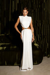 The Atena Dress is a timeless, high-impact statement piece designed for modern goddesses. Crafted in soft Ocean Comfort knit fabric, this white floor-length dress features sculpted side cut-outs, structured shoulders, and a stunning open back that creates an elegant, elongated silhouette.